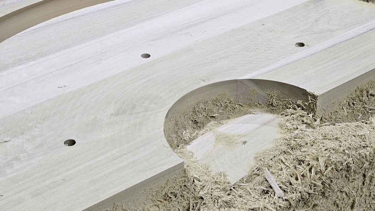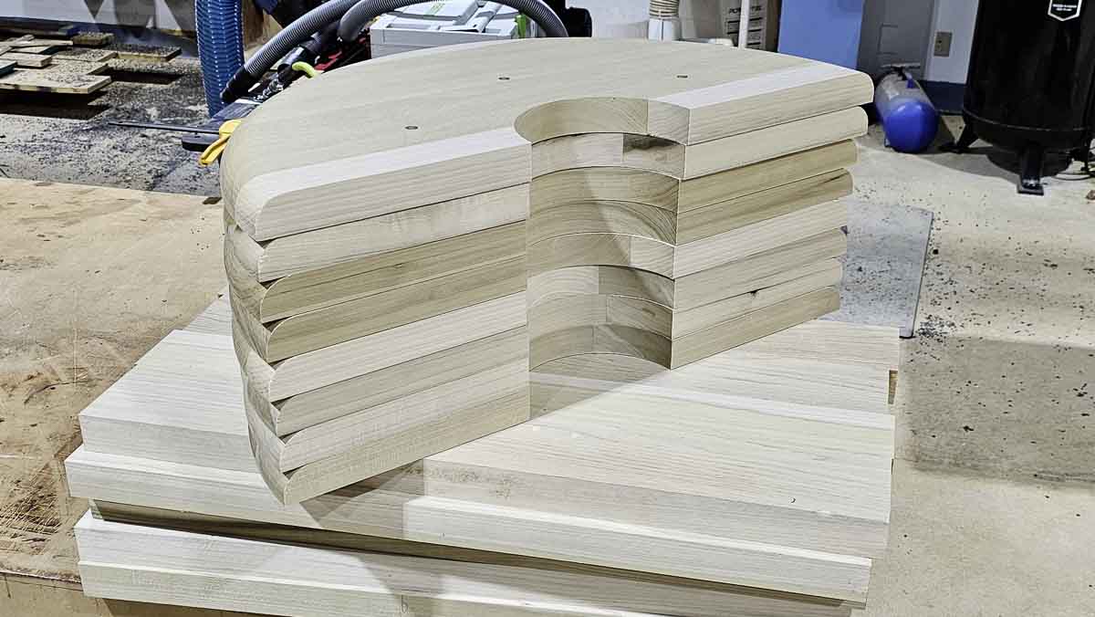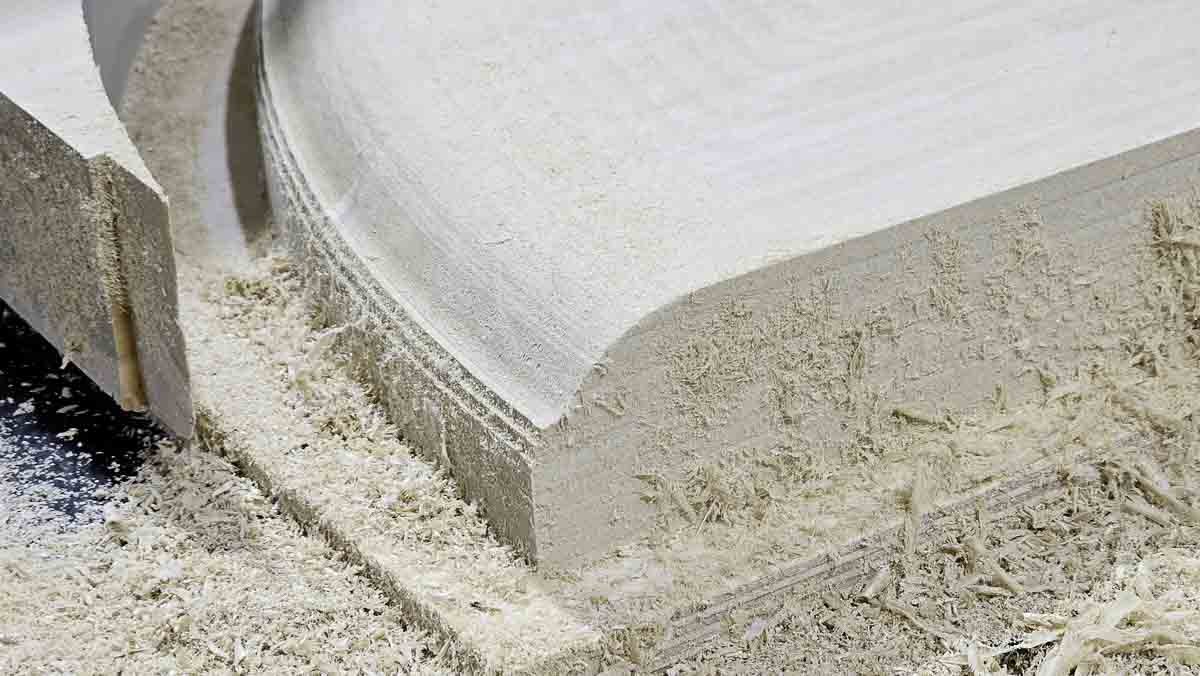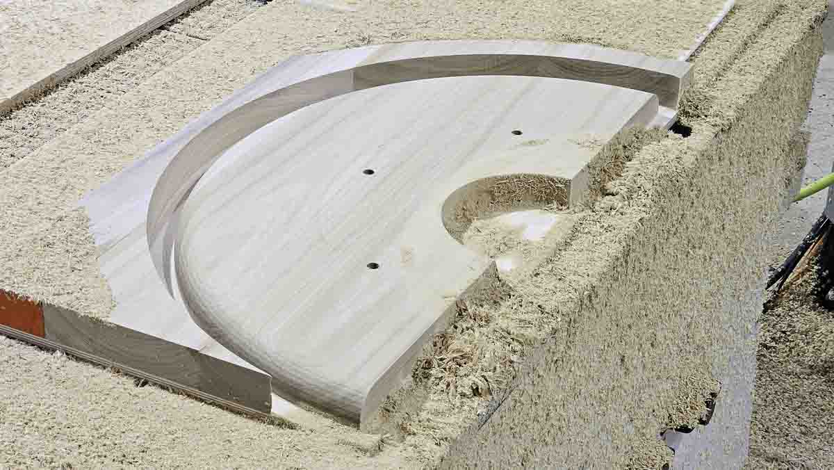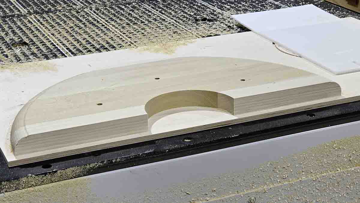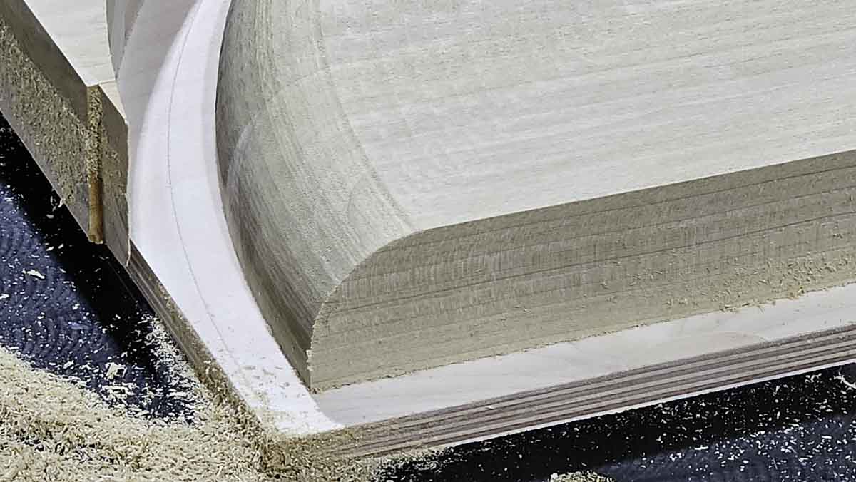 The finishing pass has completed, smoothing the curved surface. Some light sanding will remove the small cusps that are left.